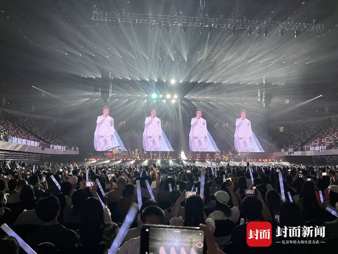 除了《万疆》《新贵妃醉酒》《清明上河图》《刚好遇见你》等令人耳熟能详的歌曲之外,李玉刚在当晚演唱会中上演了歌曲串烧,堪称80后90后的童年“回忆杀”。自称没有去过青城山的他,演唱了含“蛇”量很高的《千年等一回》,四川元素拉满。此外,从《小草》《兰花草》到《鲁冰花》《踏浪》,一首首熟悉的旋律响起,全场数次上演大合唱,几乎要把屋顶掀翻,还有不少网友在社交平台直言“梦回童年,太好哭了”。